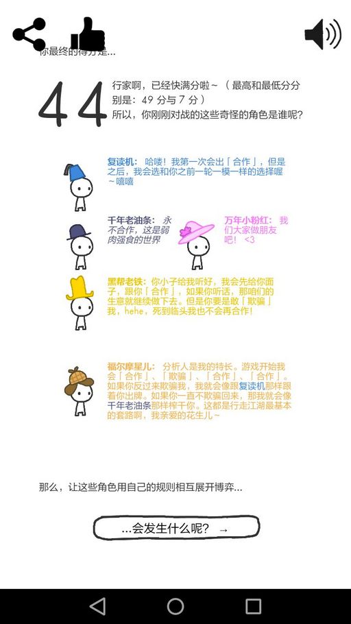 你说的感觉有点“来啊,互相伤害的意思了”,不过希望大家玩了这个游戏,能对信任与欺骗有所启发。
