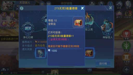 这是最近提升了战力才发现的,分享给大家 这是时空试炼的第11和第13关的奖励,算是比较重要的吧。提升战力,打得过,东西就是你的。虽然说现在无双装备不是很贵,但是能省点魔晶,何乐不为呢?!当然,这适用平民玩家,土豪玩家请忽略