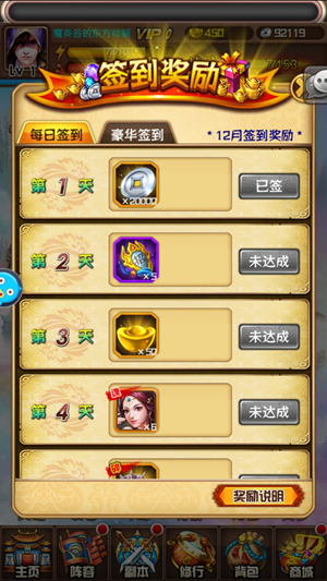 累计签到5天:可以获得豪华礼包
