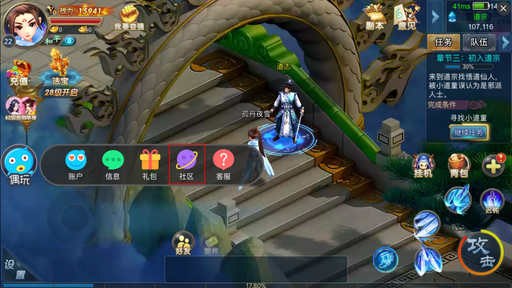 1.进入游戏后,点击偶玩悬浮图标“社区”,即可进入偶玩游戏社区